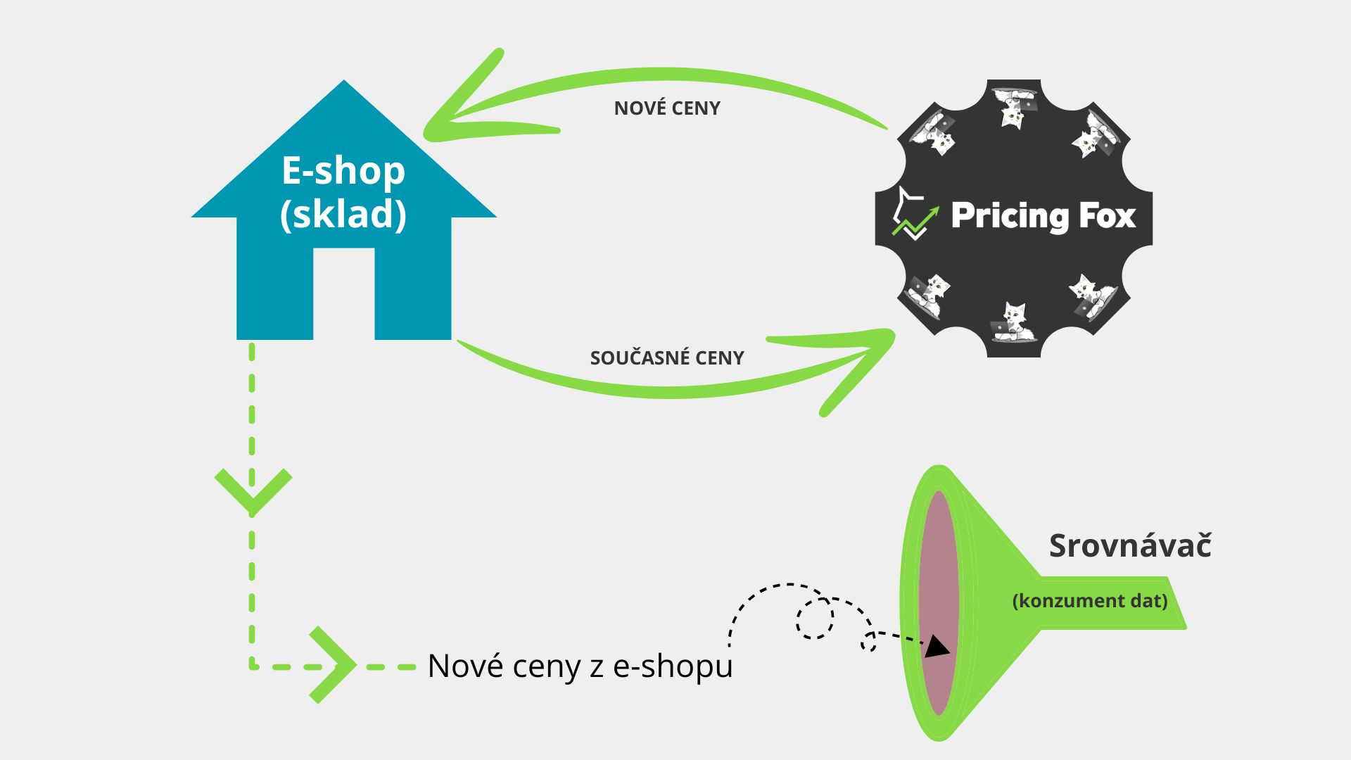 Pravidelným exportem (XML/CSV/API) odesíláte aktuální ceny a identifikátory produktů do Pricing Foxu. -