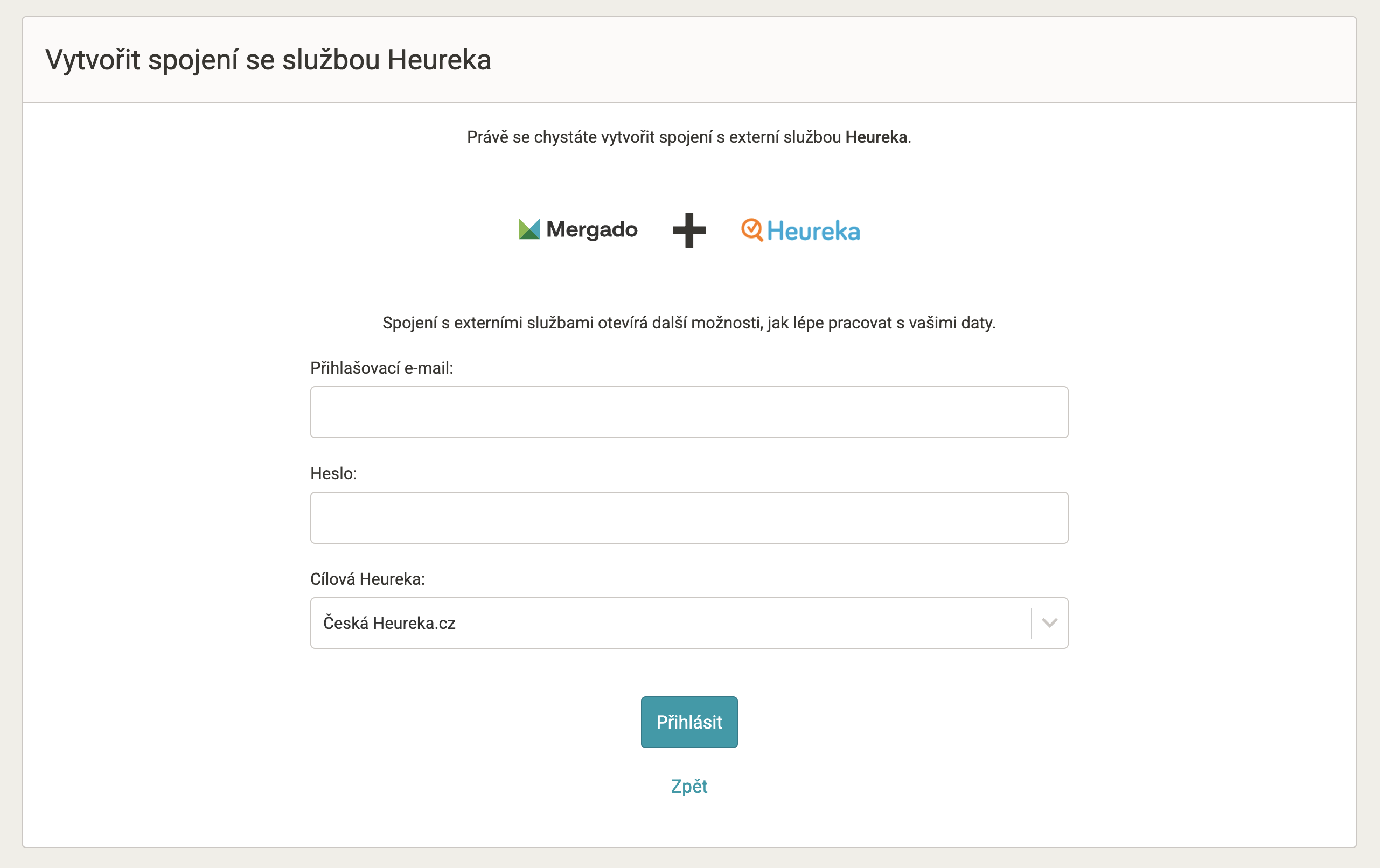 Zadejte přihlašovací údaje do administrace Heureky.