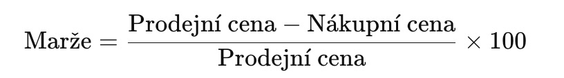 Marže představuje procentuální vyjádření toho, kolik e‑shop vydělá na prodaném zboží. Vypočítává se z prodejní ceny zboží. Je to rozdíl mezi prodejní cenou a náklady na pořízení (nákupní cena). Marže ukazuje, jaký je podíl zisku z celkové ceny.