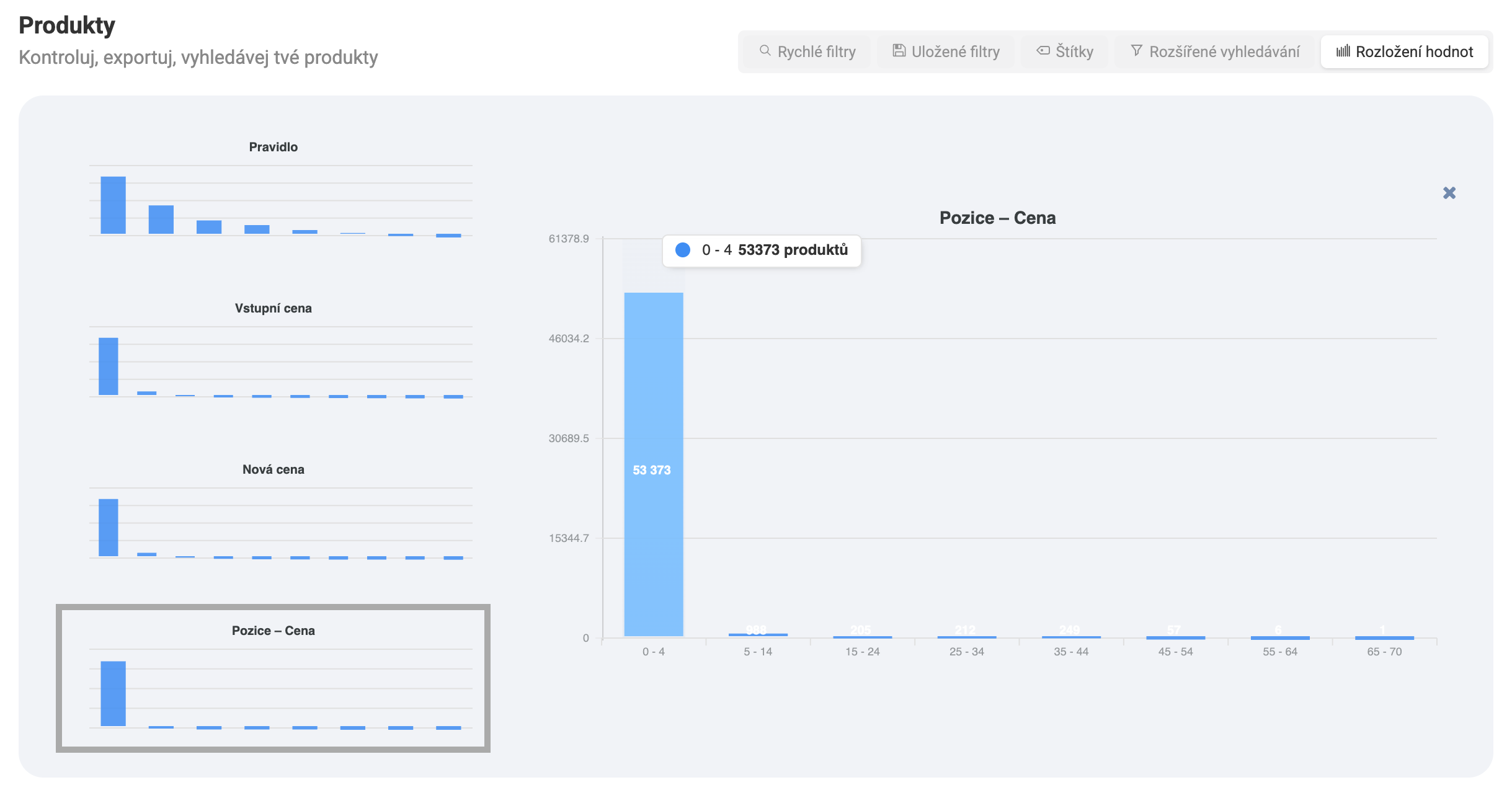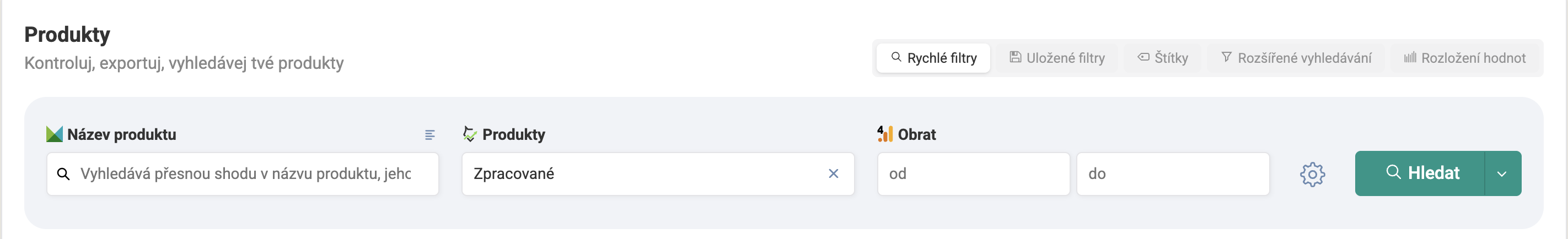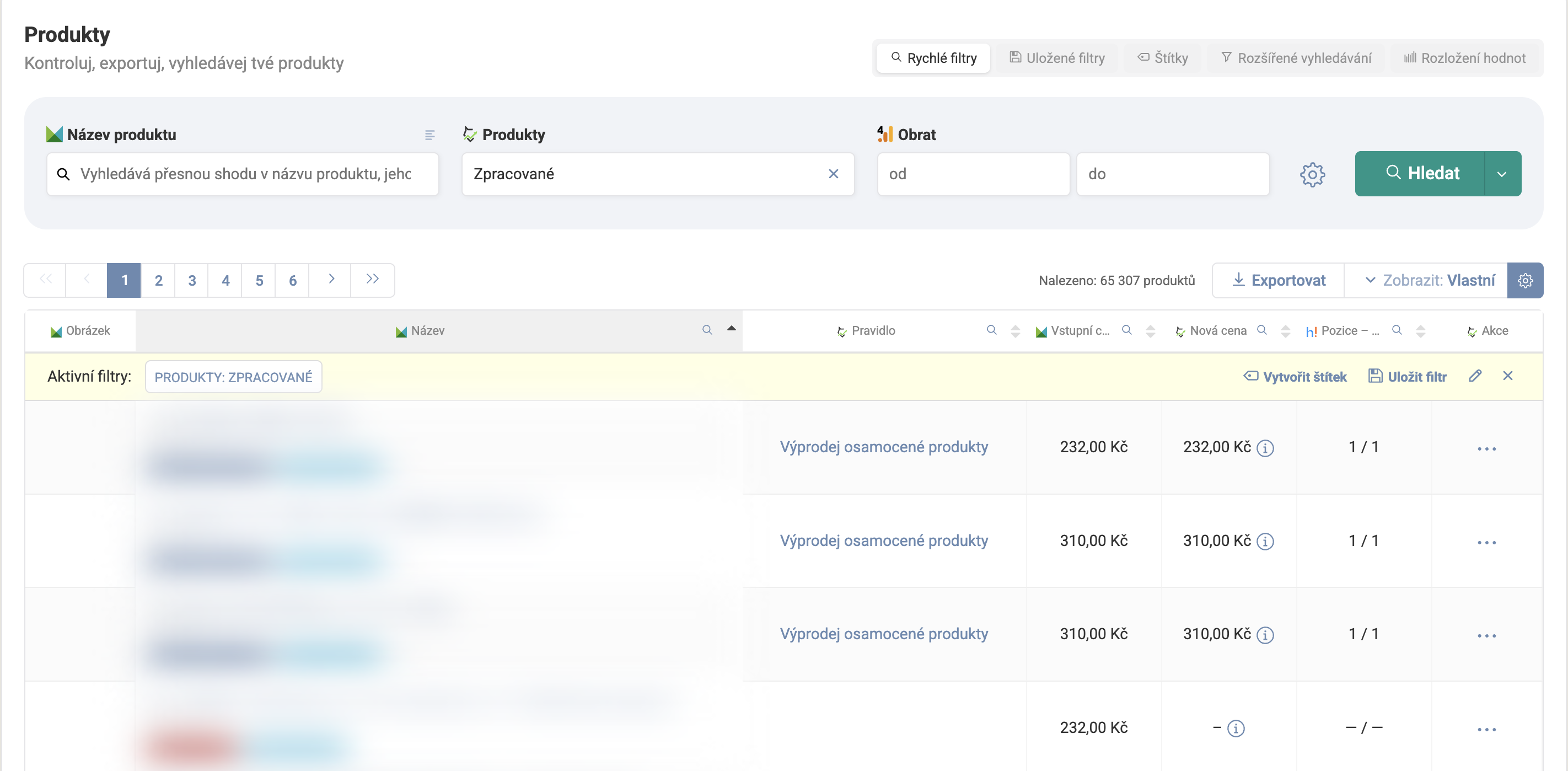 Stránka Produkty bude asi tou, na které strávíte nejvíce času. Poskytuje totiž přehled všech produktů, které Pricing Fox zpracovává a ukládá k nim různé zajímavé informace. Zároveň se jedná o stránku, která nabízí nejširší možnosti pro práci s ní. Níže si rozebereme jednotlivé sekce přehledu Produktů. Každý produkt má pak také stránku Detail produktu, kterou rozebíráme na samostatné stránce.