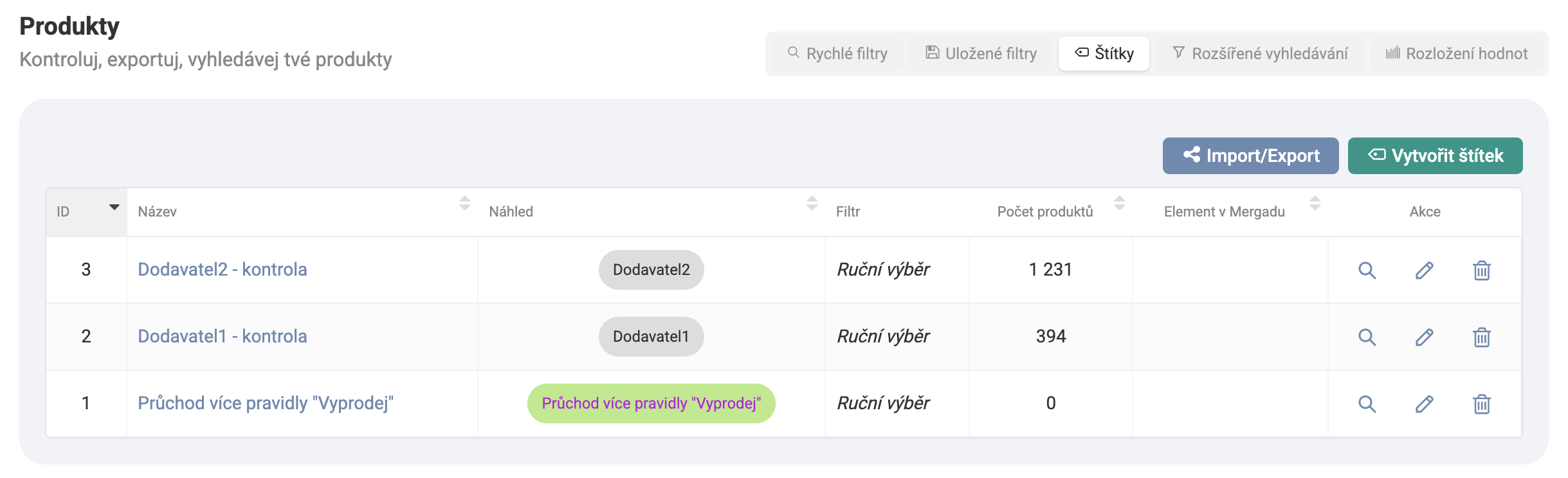 Označování produktů štítky pro lepší organizaci a segmentaci.